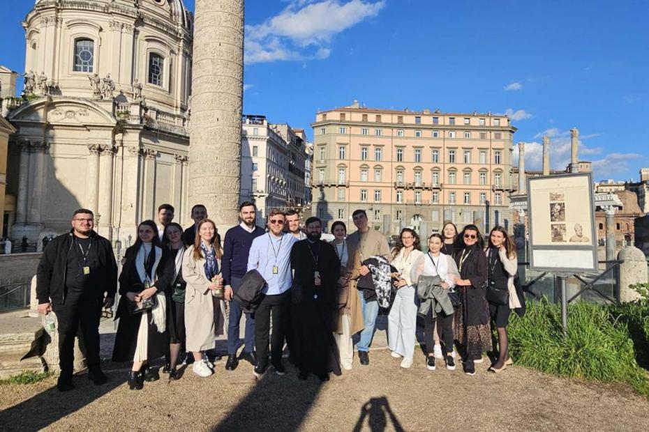 Programul a inclus o incursiune în centrul istoric al Romei, unde studenții au vizitat monumente emblematice ale Antichității, strâns legate de istoria creștinismului. La Colosseum, au reflectat asupra martiriului primilor creștini, care și-au mărturisit credința cu prețul vieții. În continuare, la Fori Imperiali și Columna lui Traian, aceștia au avut ocazia să analizeze legătura dintre Imperiul Roman și străbunii poporului român, ilustrată pe reliefurile celebrei coloane.